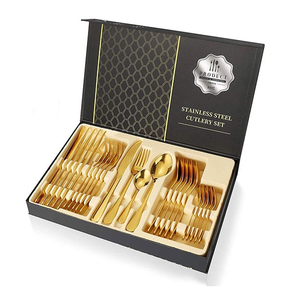 Naše luxusní sada příborů se vyznačuje výrazným a elegantním designem, který zvýší kultivovanost každého stolování.